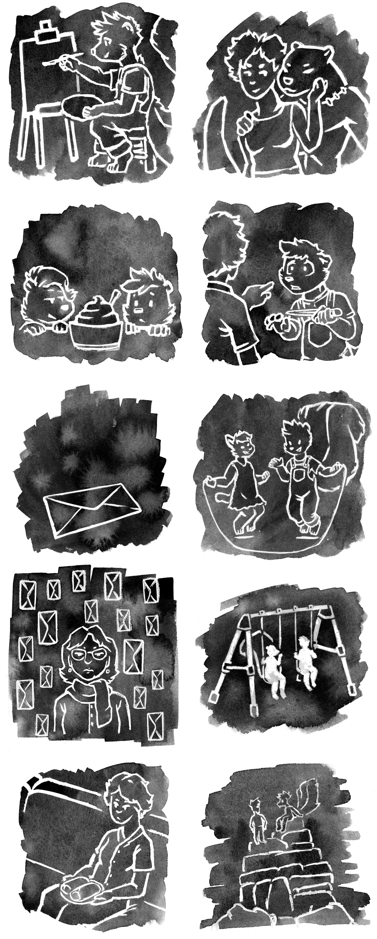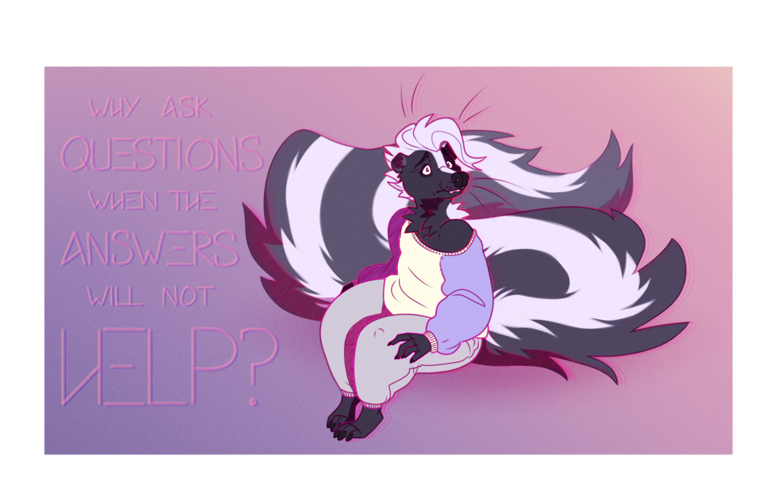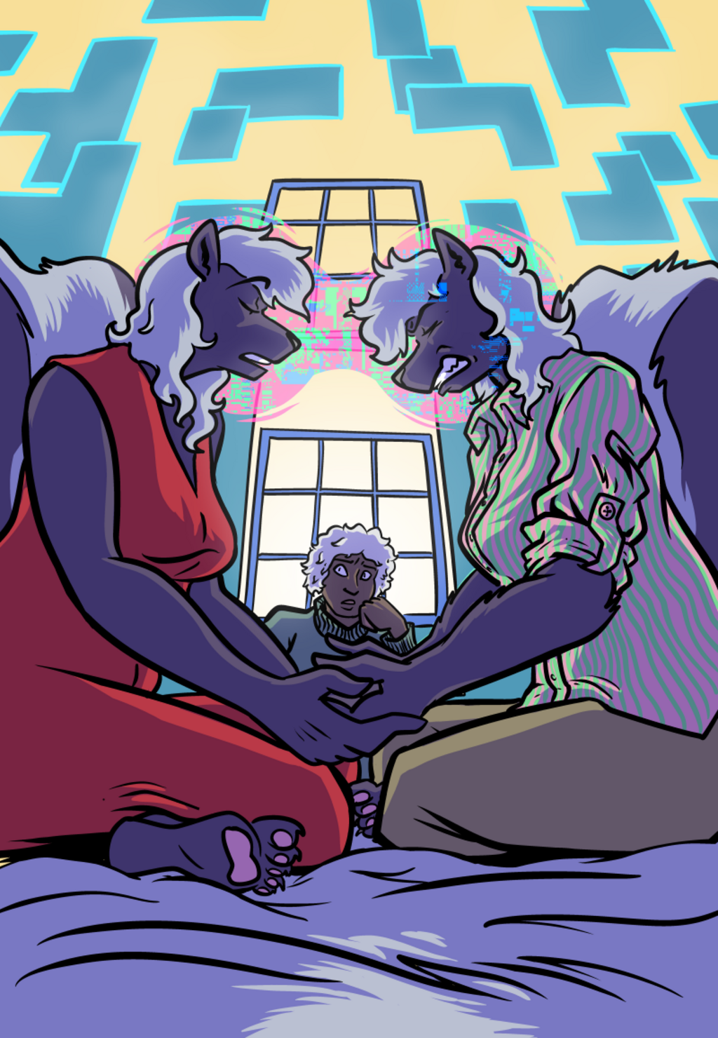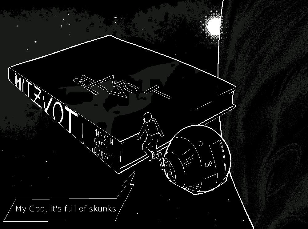 Over the course of publication and as funded by the backers of the Mitzvot Kickstarter, much in the way of art surrounding the Post-Self universe and its character has accrued. Special thanks is due to Iris Jay who drew the first bit of Post-Self art all the way back in 2017, and then all of the covers and some of the interior art of the Post-Self cycle. Thanks as well to Jade, who provided the template upon which so many of the Odists are based.